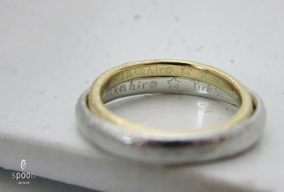 内側の刻印メッセージは二人のお名前を刻みました。手書きの字体でポップで楽しい感じに☆手書き文字はお二人のお気に入りでした。