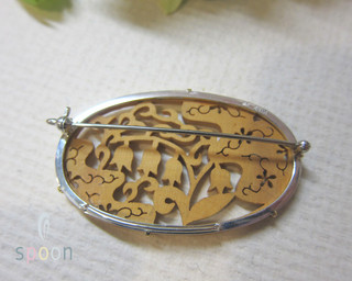 すずらんの絵柄が、繊細な透かし細工で作られています。