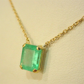 ほそく繊細なチェーンとエメラルドのぽってりしたボリューム感がとても合ってます。