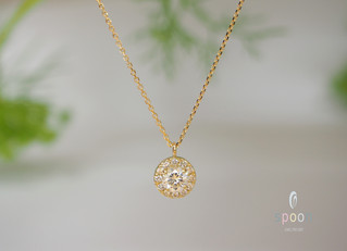 取り巻きのダイヤを中石の近くへ ギュッと配置しました。