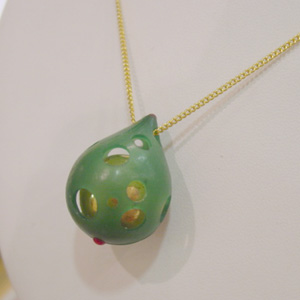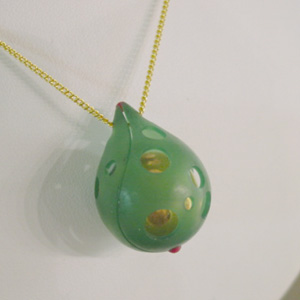 ガムランボールのペンダント 200707/17 マンデーミヤタです。 お待たせしてます。 ガムランボールの次作です。 ワックスの段階です。 もう少し穴だらけにしようかどうか、 穴を開けるとしたらどこなのか、 手が止まってしまったのでとりあえずブログを書いてます。 赤く見えるのは仮止めのワックスです。 赤い部分が蝶番になって、ガムランボールを取り出せるようにします。 穴の位置バランスって難しいのですがとてもたのしいです。