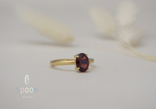艶消しの腕には 落ち着いた赤色のガーネット。