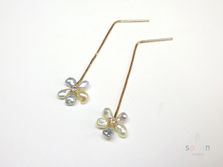 お花の形をしたK18ピンクゴールドチェーンピアス
