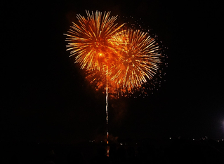 筑後川の上空に花火が上がるので、