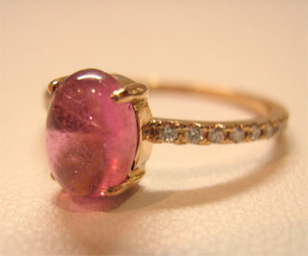 ピンクゴールドのフロイラインにピンクトルマリンを留めました。