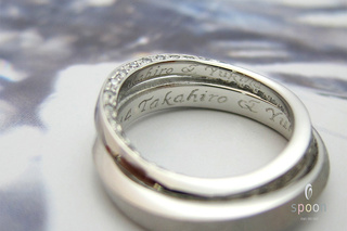 内側の刻印には、お二人のお名前を かっこよく筆記体で刻みました。
