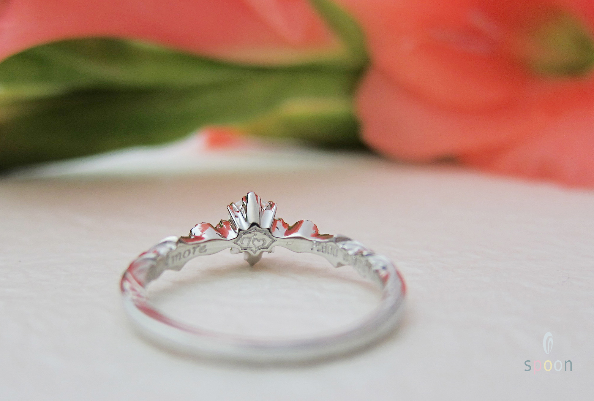 リングの内側には男性から女性への素敵なメッセージ。内容はお二人だけの秘密にしておきますね。