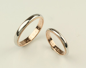 マリッジリングのオーダーをいただき、その完成写真ですが、