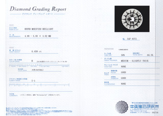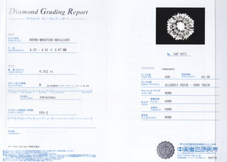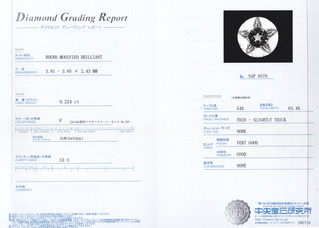 カットの形状がわかる鑑定書なので輝きまでがお伝えできませんが、