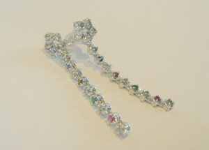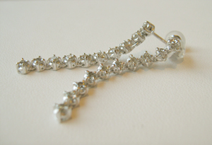リフォームピアス 200802/03 マンデーミヤタです。 使わないブレスレットの石を使って長めのピアスを2セット作りました。 ブレスレットの石枠が大きすぎるのが原因で使わなくなったらしく、 出来るだけ石枠を華奢にというご注文でしたが、 ジョイントの線の太さやその構造上の理由から この大きさになりました。 この状態が限界なのかどうか今後も研究してみようと思います。 華奢で丈夫というのはなかなか難しいですが、 できたらかわいいでしょう。