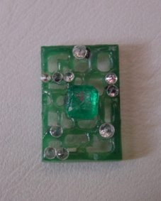 リングとおそろいのペンダント 200706/05 お手持ちの緑色透明石をリフォーム。 お手持ちのリングと合わせてお使いになられたいということで リングとお揃いのデザインにします。 リングが透かしの入った石畳っぽいデザインです。 お手持ちのメレ石を彫り留めします。 ボリュームがあるペンダントですが 透かしが入っているので重たくないです(^-^) メレ石が留まったら華やかだろうな☆ オオハラでした。