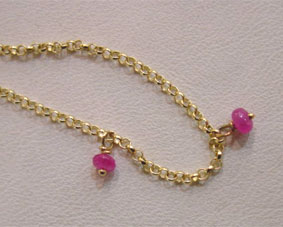 このルビーのビーズの留め方 シンプルなようでけっこう手間がかかります。