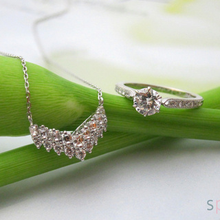 爪の大きな“立て爪リング”と 背の高い“重ね付け用のV字リング”