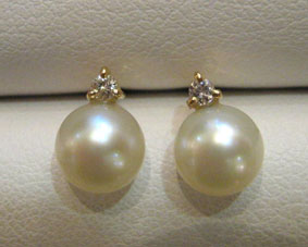 リングに留まっていた真珠2つとメレ石2石を使ってピアスをつくりました。