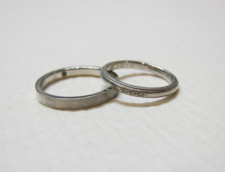 女性のリングは傷もたくさん入っています。