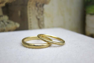 お作りした指輪は、人気のテクスチャシリーズの「刻(きざむ)」というデザイン。ヤスリという道具を使って、指輪を削ったままの表情をテクスチャとしてデザインしたマリッジリングです。