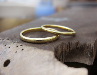その粗い”やすり目”を残したテクスチャです。あえて未完成にしたのは、ふたりの家族はリングのように完成していないから。これからの長い年月をふたりでリングとともに歩んでいく。その歩みがリングにしっかりと刻まれ、いつしかリングを完成へと導く。