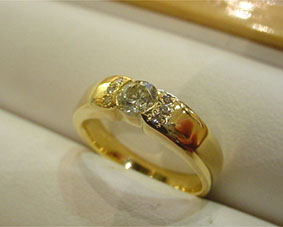 脇にお手持ちのリングについていたメレの石を 6石留めました。