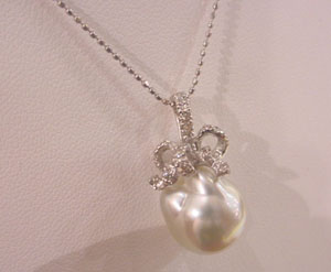 10ミリの白蝶バロック真珠にプラチナのバチカンでダイヤが0.3ctついてます。