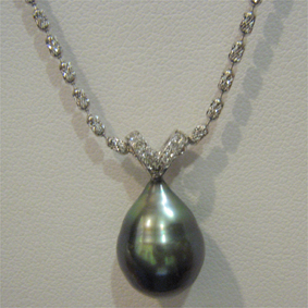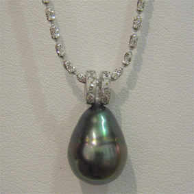 ダイヤが留まっている面は テリがとてもよい真珠に負けないような華やかさがあります。