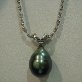 チェーンが写真のように華やかなものだったら 鏡面の方が真珠が映えるかもしれません。