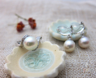その真珠をつかって奥様のためにリングとイアリングをお作りします。