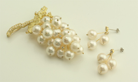 余った真珠のネックレスの珠をつかってブローチを作りました。